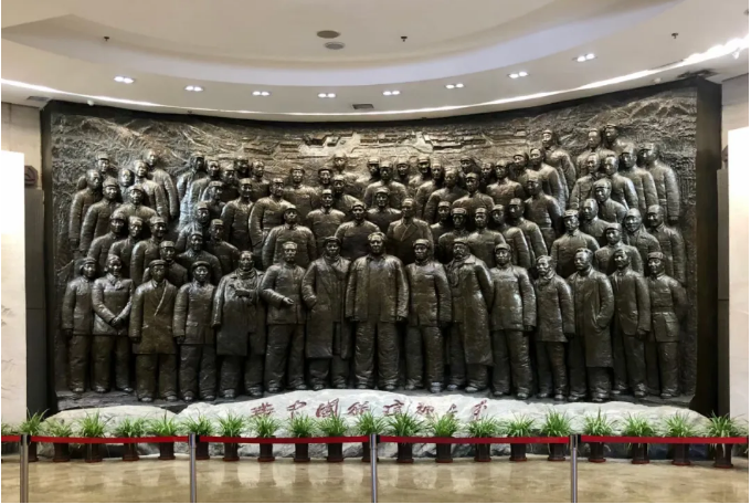 走進西柏坡紀念館,首先映入眼簾的是“新中國從這里走來”大型銅雕,老一輩革命家群像栩栩如生,堅定的姿態、磅礴的氣勢,仿佛整個都是用意志和執著鑄造的,爆發出蓬勃的力量。