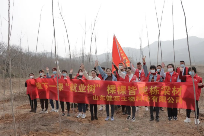 陽春三月,草長鶯飛,第44個植樹節如約而至,為響應“綻放活力 強區有我”活動主題相關要求,踐行習近平總書記綠水青山就是金山銀山的理念。2022年3月11日泰安市岱岳區山口鎮開展“播撒希望,栽一株錦繡前程的‘就業樹’”活動,植一棵樹、造一片林、增一抹綠,種植的不僅是一棵棵樹苗,更是一個個希望。山東健源生物科技有限公司作為本次活動贊助支持企業參與植樹活動,與大家共同播撒希望,助力鄉村振興。