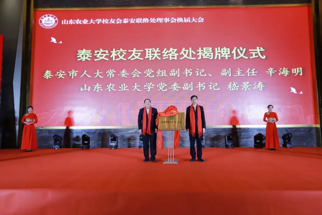 會上,泰安市人大常委會黨組副書記、副主任辛海明,山東農(nóng)業(yè)大學(xué)黨委副書記嵇景濤共同為泰安聯(lián)絡(luò)處揭牌。