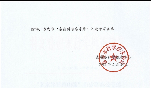 王誠董事長被市科協認定為泰安市“泰山科普名家”