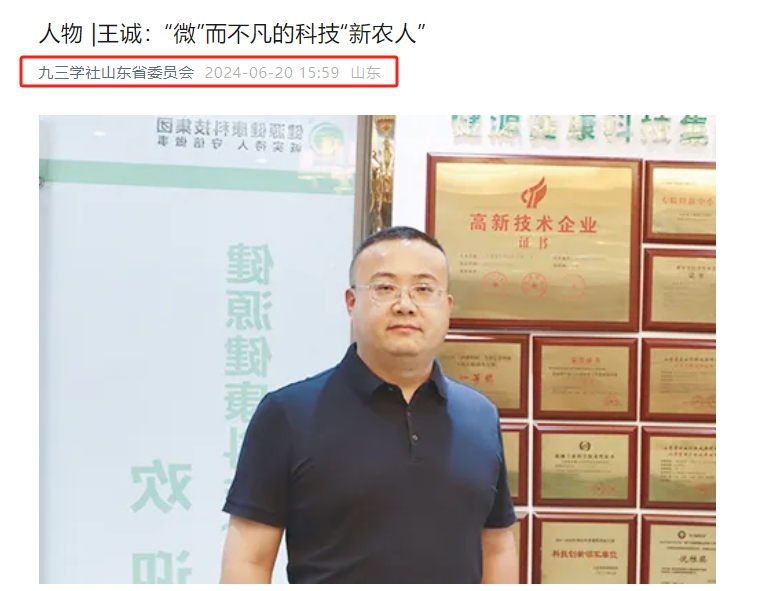 日前,王誠董事長接受了聯合日報記者的采訪,報道發表在2024年6月20日《聯合日報》3版,講述了王誠董事長作為“新農人”,20多年來深耕微生態領域,以高活性益生菌符合生物制劑技術為基點,從飼草料高效青貯、動物全消化道功能調控、養殖環境污染控制等方面開展全方位的發明創新,用專有發明技術助力農牧業高質量發展。而作為一名九三學社社員,王誠董事長堅持以“愛國、民主、科學和創新”的九三精神指導實踐,出色地完成各項工作。該報道同時被九三學社山東省委員會轉載報道。