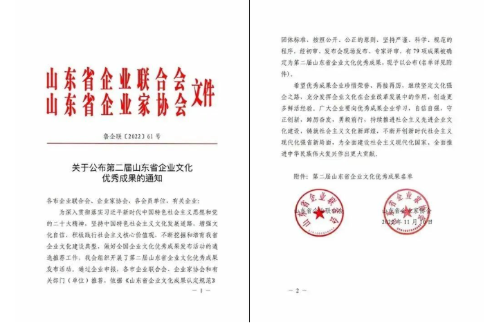2022-12-26 健源生物榮獲第二屆山東省企業文化優秀成果二等獎
