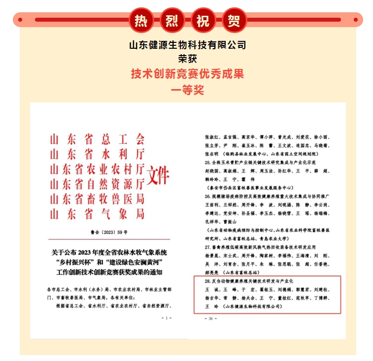 熱烈祝賀 山東健源生物科技有限公司 榮獲 第三屆山東省企業文化優秀成果 二等獎 1月23日-...