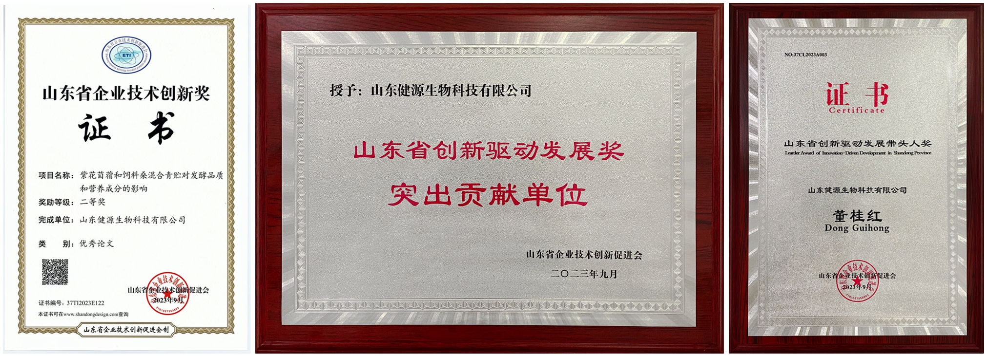 2023-10-13 山東健源生物斬獲三項山東省企業技術創新大獎