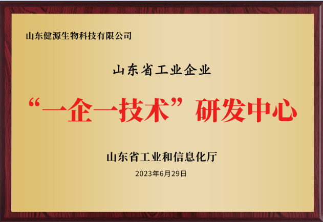 2023-7-6 山東健源生物被認定為2023年山東省“一企一技術”研發(fā)中心