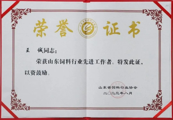 2023-9-2 山東健源生物董事長王誠榮獲2023山東飼料行業(yè)先進工作者