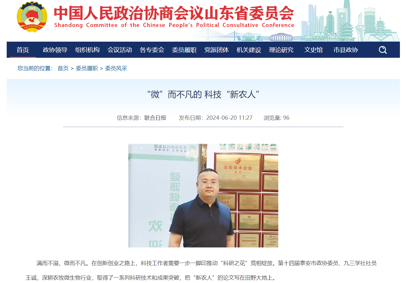 近日,中國人民政治協商會議山東省委員會官網推送《“微”而不凡的科技“新農人”》文章,報道山東健源生...