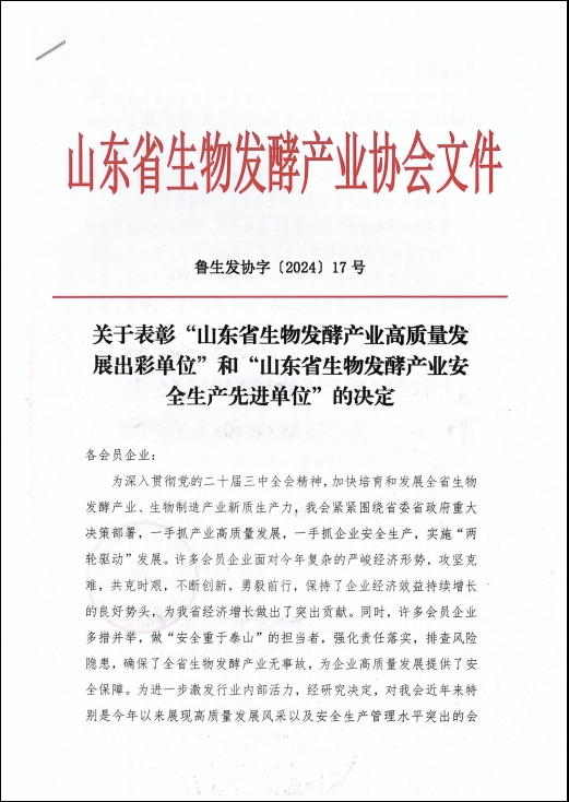 健源生物榮獲“山東省生物發(fā)酵產(chǎn)業(yè)高質(zhì)量發(fā)展出彩單位”稱號(hào)